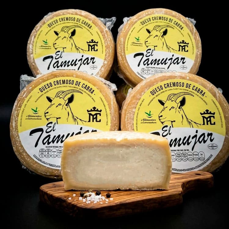 Queso Cremoso de Cabra “El Tamujar” suave y cremoso, elaborado con leche cruda y madurado mínimo 60 días. Ideal para untar y disfrutar.